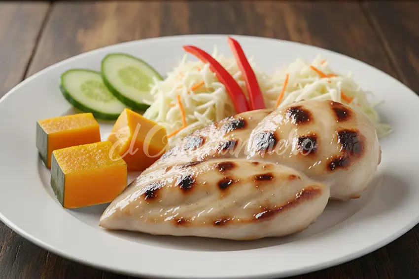 Filete de pollo tierno, sazonado y cocinado a la plancha para un sabor natural.